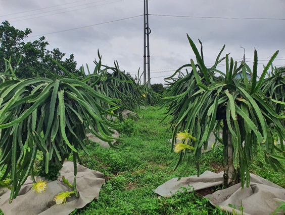 Quản lý cỏ hợp lý trong vườn thanh long giúp giữ ẩm, bảo vệ đất