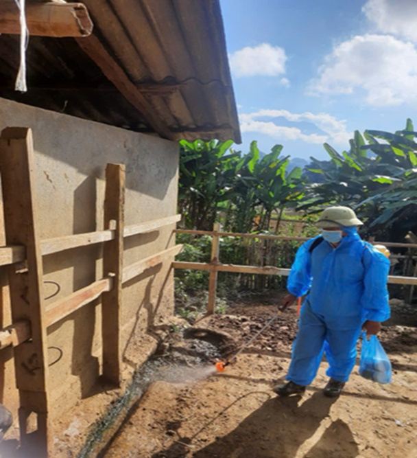 - Phun thuốc sát trùng, quét vôi tường, nền chuồng, hành lang, lối đi...