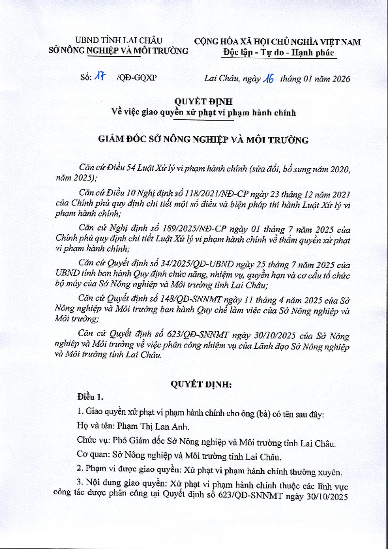| Số hiệu | 17/QĐ-GQXP | Cơ quan ban hành | Sở Nông nghiệp và Môi trường |