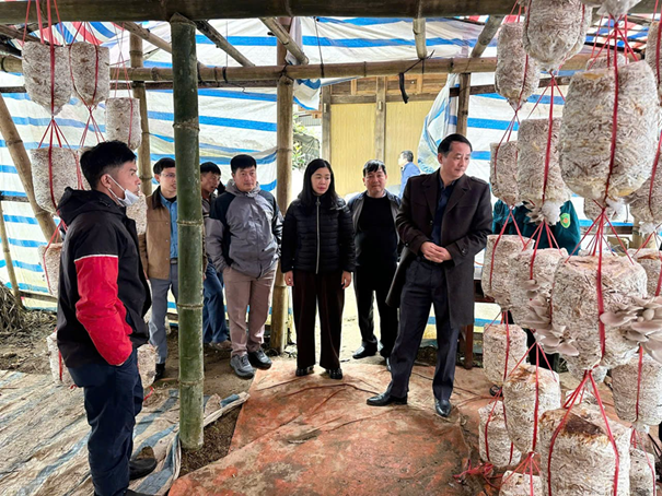 Đ/c Vũ Xuân Thịnh - Bí thư xã kiểm tra mô hình trồng nấm rơm