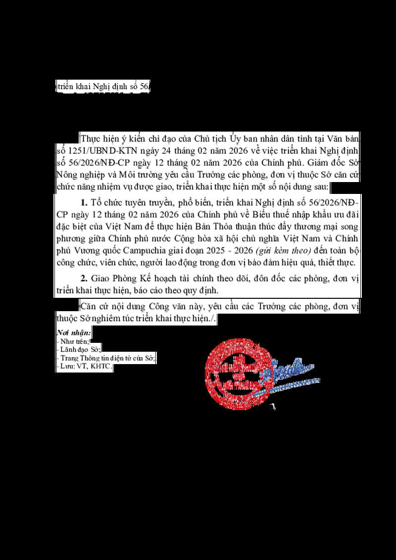 | Tiêu đề văn bản | triển khai Nghị định số 56/2026/NĐ- CP ngày 12/02/2026 của Chính phủ | ||